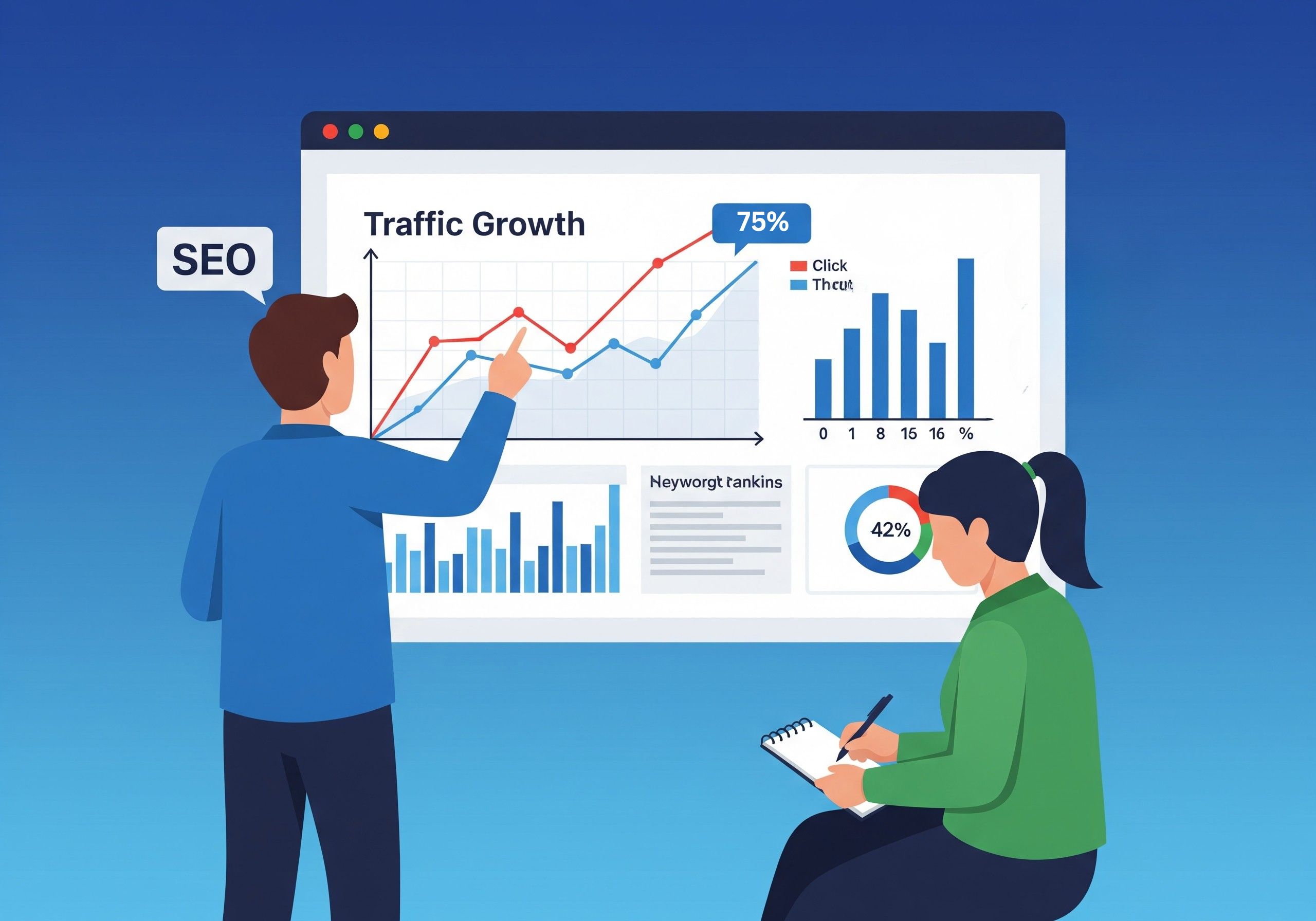 - Content Quality: We create engaging, keyword-optimized content that attracts users and improves relevance.
