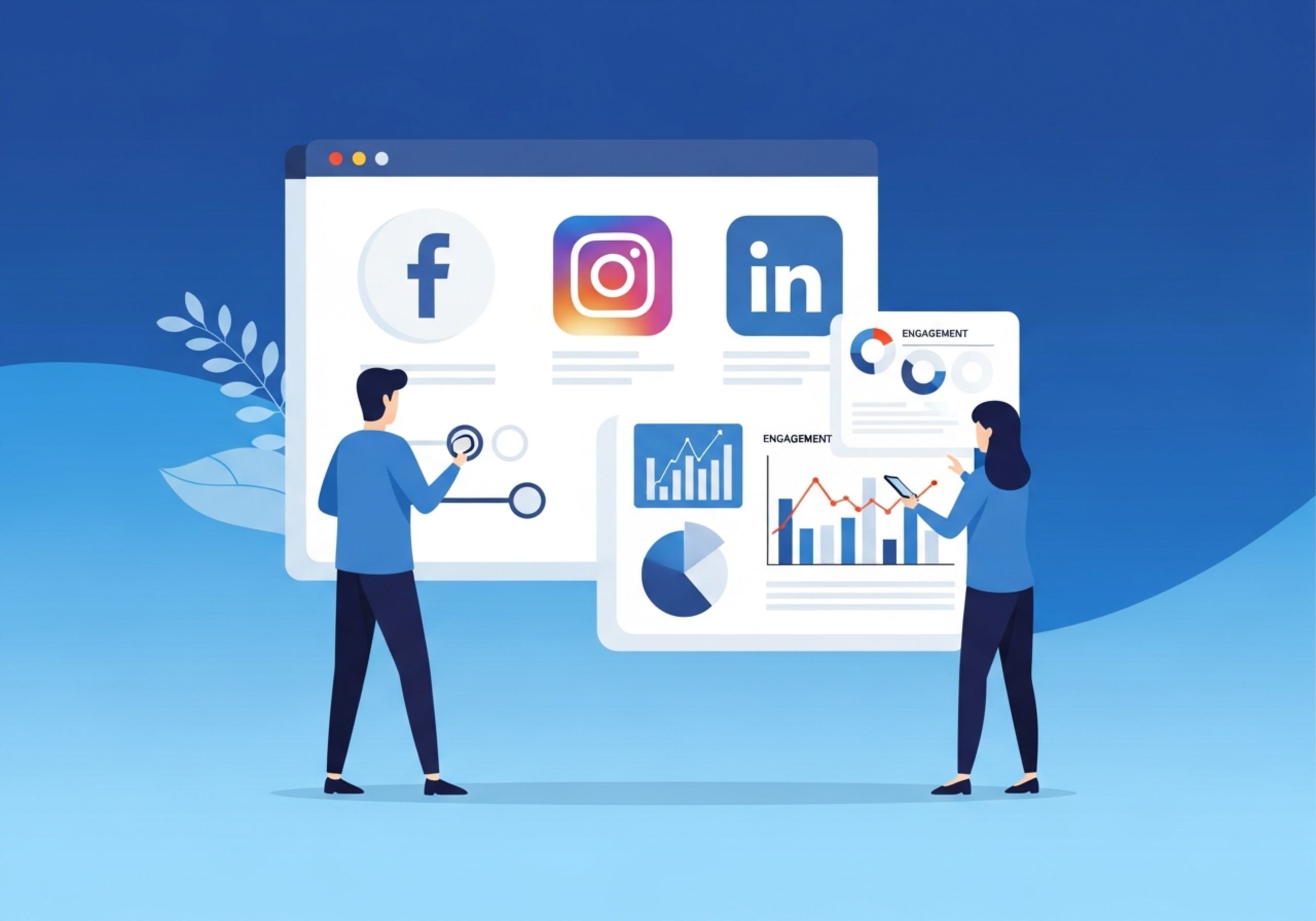 We monitor performance metrics like engagement rate, reach, and clicks to continuously improve your social strategy.